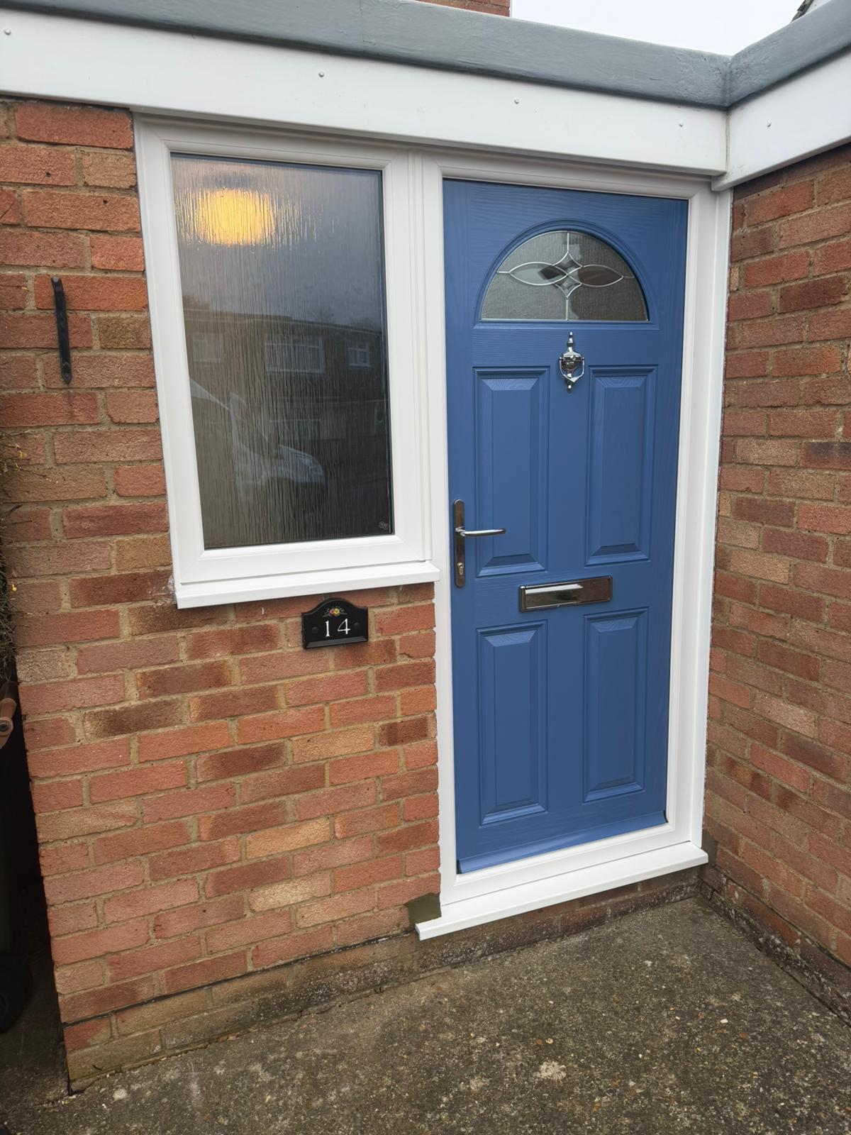 A recent Distant Blue Composite Door and 1 White UPVC Window.